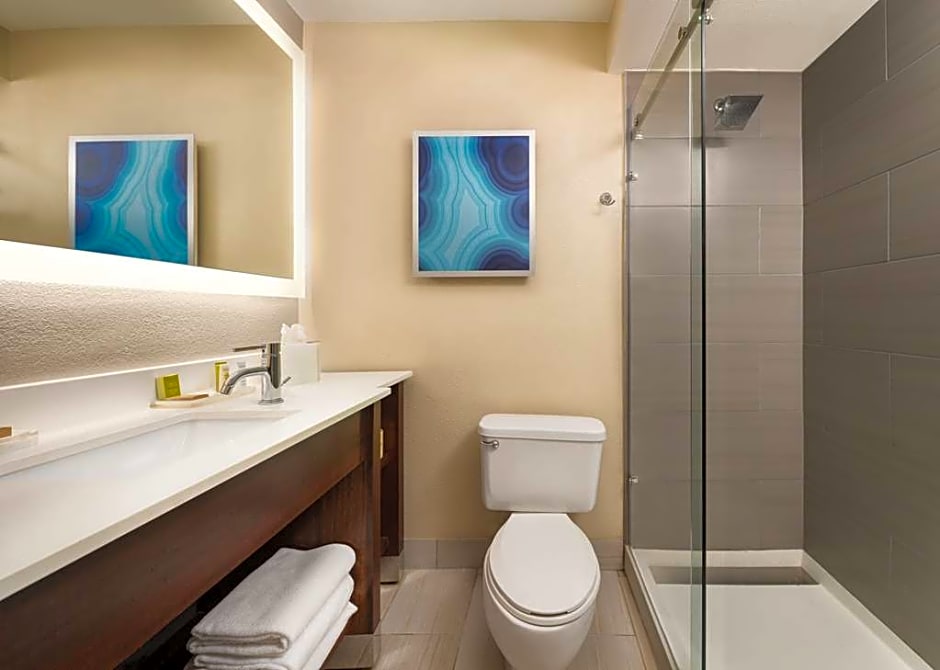 This mobility accessible standard room features one king-sized bed and a roll-in shower. Any corresponding photo may not reflect the specific accessible room type or room feature.
